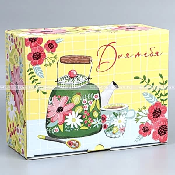 Подарочная коробка-пенал "Для тебя" с ярким дизайном и чайной тематикой. Эта Pin-Up универсальная - в неё можно упаковывать подарки и дарить на любое событие. В коробочку можно упаковать любой товар в нашем магазине. Коробка из гофрокартона, твёрдая, можно вложить в неё как чай, так продукты в стеклянной таре или чайную посуду. Картонная упаковка сейчас очень востребована, ввиду своей экологичности, натуральности и своеобразной "изюминки" и наконец низкой цены.